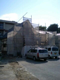 シートが張り巡らされていて、はっきりとは見えませんでしたが、大きな三角屋根が見えます。どうやら新しい店舗は、比較的オーソドックスな外見になるみたいですね。