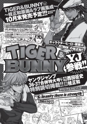 8月4日に発売される週刊ヤングジャンプ36・37合併号に、桂正和先生本人の作画による「TIGER&BUNNY」の読切漫画が掲載されるそうだ!