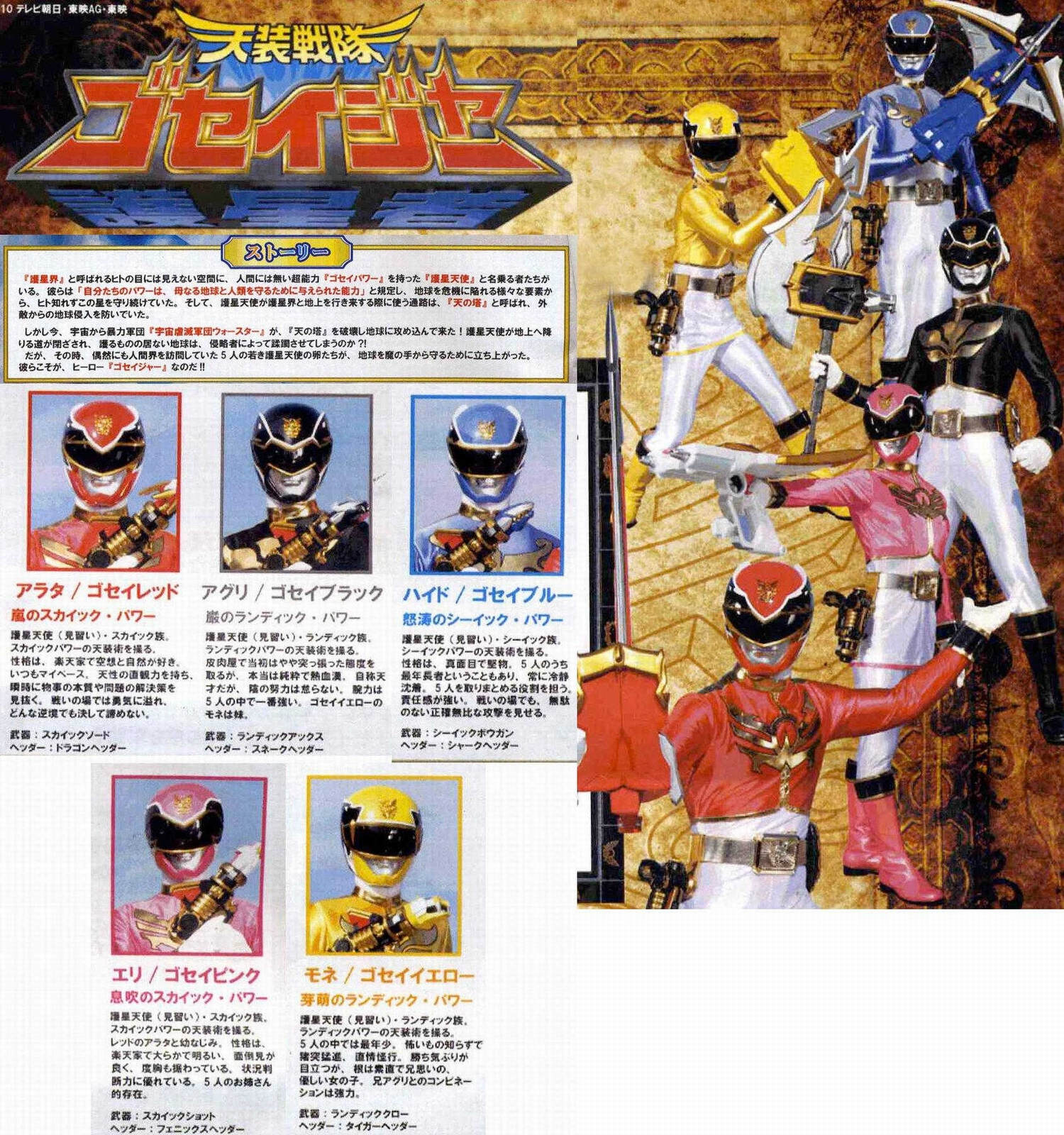 今年は「ゴレンジャー」の放映35周年(当時1~2歳…物心付いていない…大汗)と言う節目の年だけに、「シンケンジャー」みたいに、途中で巨大ロボを出し尽くしたり(10月時点でもう究極ロボが出ていたし!)、ストーリー的な瓦解を起こさない(特に第6の戦士が寿司屋&提灯型ロボが何故か岡っ引と言うのには萎えた)様に、基本設定をしっかりとして頂きたいものです。