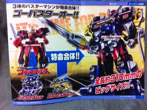 更に更に、その3体のバスターマシンが合体してガンバス(ry もとい、「ゴーバスターオー」という巨大ロボになるようです。